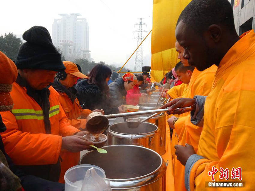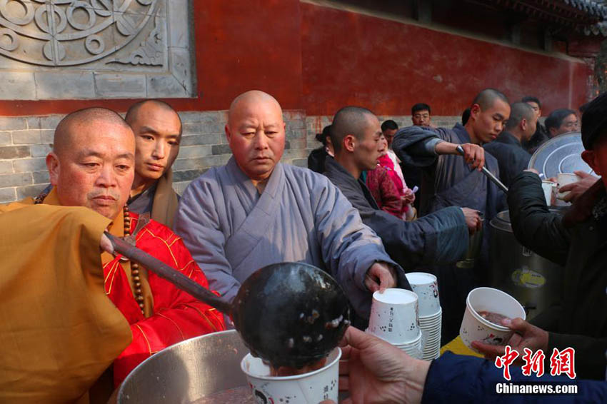 舊暦12月8日の「臘八節(jié)(ろうはちせつ)」に當たる1月17日、河南省鄭州市の小林寺は少林薬局や鄭州の管轄區(qū)域10か所で合計20萬人分余りの臘八粥を盛大に振舞った。少林寺の釈永信住職は「臘八節(jié)は中國伝統の祝日であり、仏教では釈迦が悟りを開いた最も重要な祝日である。仏教徒からは『法寶節(jié)』呼ばれ、寺院の境內で粥を振舞うことで仏法を広め、民衆(zhòng)に教えを説き、人々が求める知恵、健康、質素ながらも幸せな生活を反映している」と語った。中國新聞網が伝えた。(編集JK)