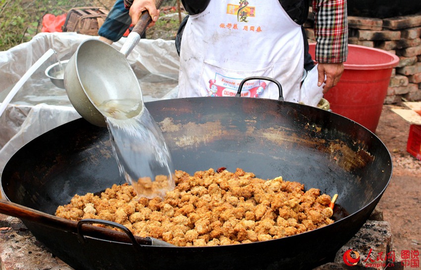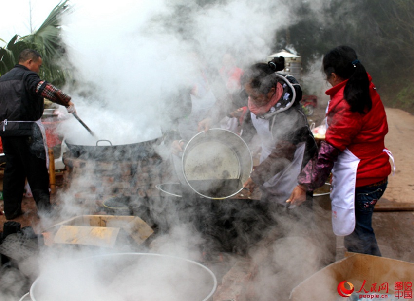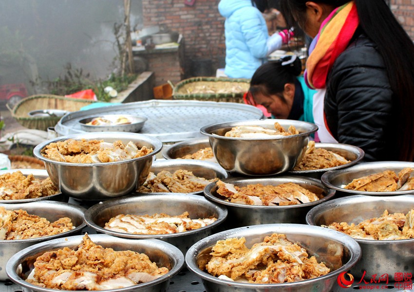 舊暦12月8日に當(dāng)たる1月17日、四川南部に位置する內(nèi)江市の農(nóng)家で祝いの宴會が行なわれている最中だった。同日の最低気溫は3℃で、早朝から勤勉な農(nóng)村の女性たちが前菜の準(zhǔn)備を始めた。(編集JK)