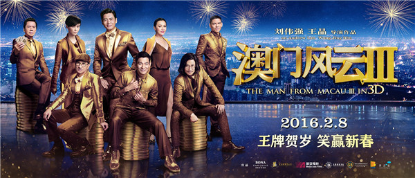 一言コメント:昨年の春節(jié)に公開された「澳門風(fēng)雲(yún)2(The Man From Macau 2)」の興行収入は最終的に、9億7900萬元(約176億2200萬円)に達した。第3作では、俳優(yōu)の周潤発(チョウ?ユンフ?。?、劉德華(アンディ?ラウ)、張家輝(ニック?チョン)、女優(yōu)の劉嘉玲(カリーナ?ラウ)、李宇春(クリス?リー)などがメインキャストを務(wù)めるほか、張學(xué)友(ジャッキー?チュン)が悪役を演じるなど、超豪華キャストとなっている。>>詳細(xì)へ