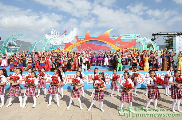 「民族団結誓詞碑」の建碑65周年、および寧洱ハニ族イ族自治県成立30周年記念大會が12月27日、普洱(プーアル)市寧洱県水灣公園広場で盛大に開催され、3600人もの各民族の人々が一堂に會した。民族の歌や踴りが披露され、盛大な記念式典が執(zhí)り行われた。(編集IM)