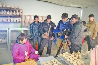 その後、撮影班は、朱氏汝磁有限公司を訪問し、汝窯磁器の職人?朱文立さんを取材した。朱さんは、「1996年に、NHKの近藤さんが汝州市に來て、徽宗をテーマにした番組を撮影した。今回もNHKが徽宗とお茶をテーマにした番組の撮影に來て、本當に縁を感じる」と話す。今回の撮影コーディネーター?楊燁さんは、「朱さんと番組の製作にかかわることができてとても光栄。今回の撮影で、朱さんの國際的な陶器界での影響力がさらに向上することを願っている」と語った。