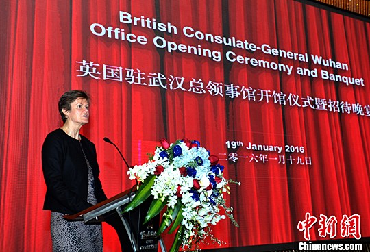 湖北省武漢市で1月19日、1年余りの準(zhǔn)備期間を経て在武漢英國総領(lǐng)事館の開館式典を開催した。2014年の初め、中國と英國両國政府は在武漢総領(lǐng)事館の設(shè)立を許可した。2015年3月から同領(lǐng)事館の工事が著工した。英國はフランス、米國、韓國に続いて4番目に武漢に総領(lǐng)事館を設(shè)立した國となる。寫真は開館式典であいさつをする駐中國バーバラ?ウッドワード英國大使。中國新聞網(wǎng)が伝えた。(編集JK)