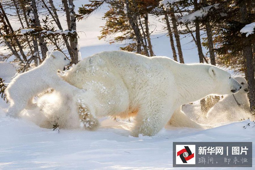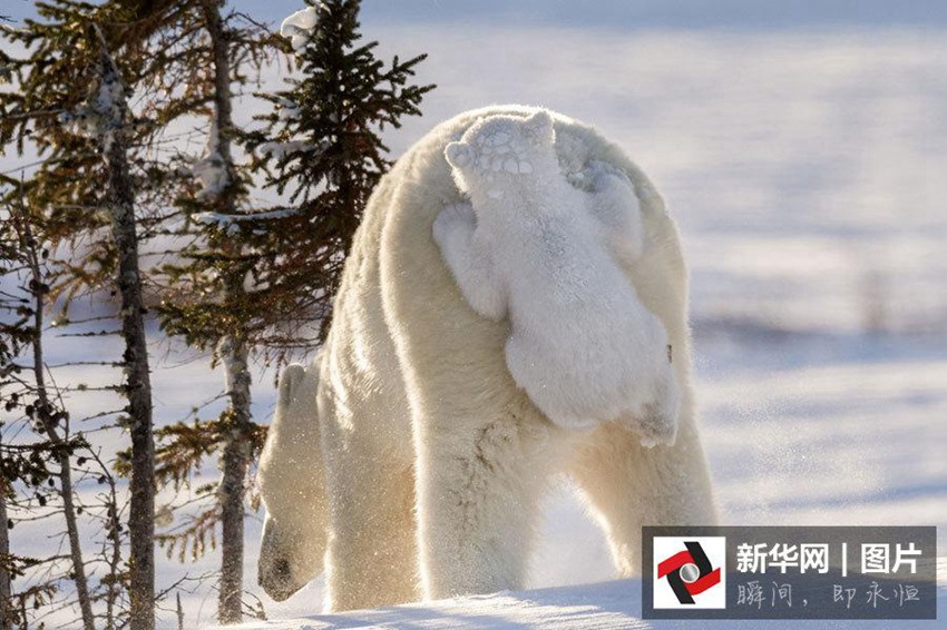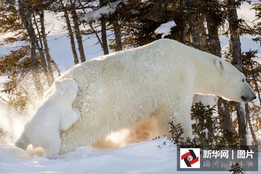 このほど、寫真家のデイジー?ジラルディーニさんがカナダのワパスク國立公園でホッキョクグマの赤ちゃんが巣穴を離れるシーンを撮影した。母グマが2頭の赤ちゃんグマを連れてエサを探しに出かけているところだが、赤ちゃんグマのうちの1頭がママのお尻にぶら下がってヒッチハイクをしている様子が非常に可笑しい。新華網が伝えた。(編集JK)