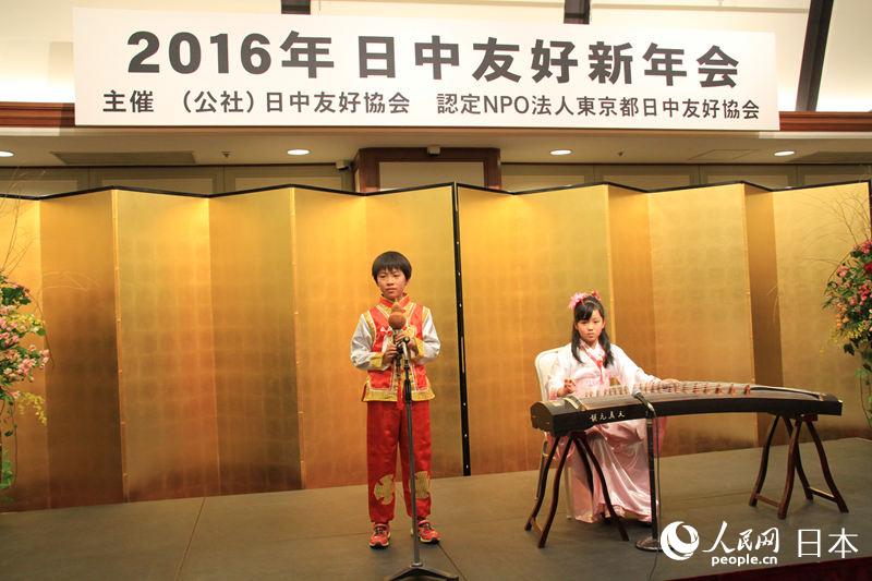 新年會(huì)では、在日華人団體「東京北京國際文化交流協(xié)會(huì)」がダンスや楽器の演奏などのパフォーマンスを披露した。