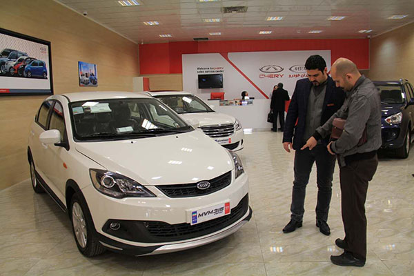 イランの首都テヘランに位置する中國の自動車「奇瑞汽車」販売店で、消費(fèi)者の質(zhì)問に答える販売員。(撮影:人民日報(bào)全媒體プラットフォーム記者張志文)