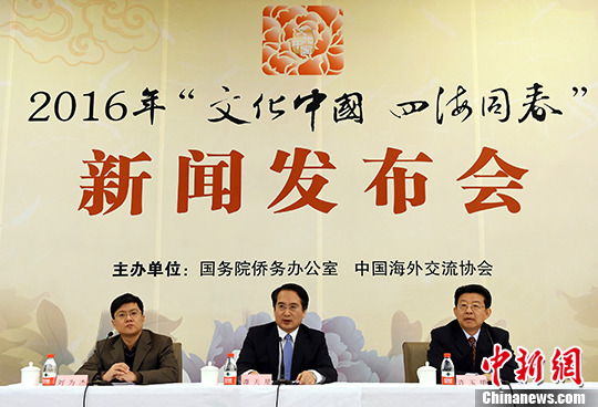 2016年「文化中國?四海同春」蕓術団記者會見が北京で開催された。國務院僑務弁公室の譚天星副室長が記者會見の席で2016年「文化中國?四海同春」蕓術団の春節(jié)(舊正月、今年は2月8日)華僑慰問公演は9つの蕓術団で結成する予定だとし、ヨーロッパ、アジア、アフリカ、オセアニア、南北アメリカの22カ國と香港、マカオ地區(qū)の42都市で計53公演を行なうことにしており、公演內容は歌と踴り、楽器演奏、劇、武術、雑技、マジックなど様々なショーが予定されていると発表した。中國新聞網(wǎng)が伝えた。(編集JK)