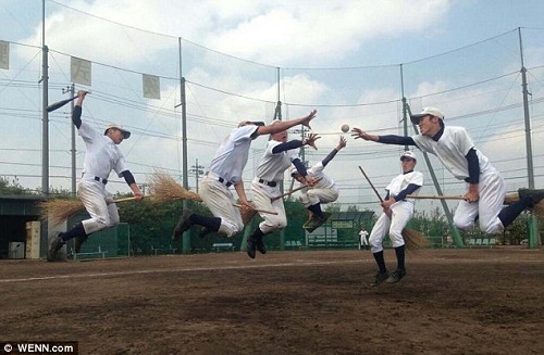 ハリポタのクイディッチ寫真ブーム、ほうきに跨り宙に浮く