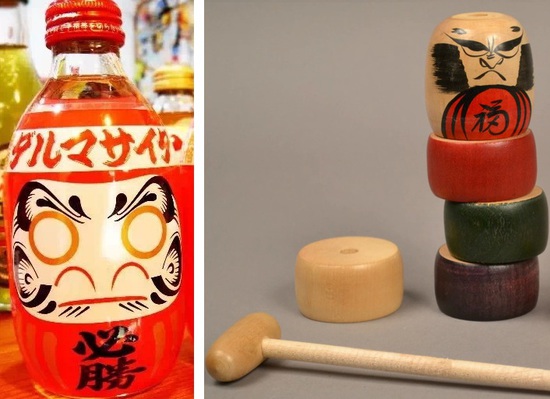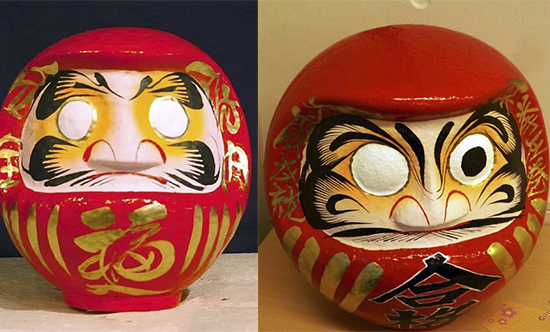 ダルマ飾りは「飾り用」と「願(yuàn)掛け用」の二種類に分けられる。前者には目が描かれており、後者は自分で目を描き入れる。願(yuàn)掛けをしてからダルマの左目に目を描き入れ、願(yuàn)いが葉ったら、右目にも目を描き入れて「開眼」させる。