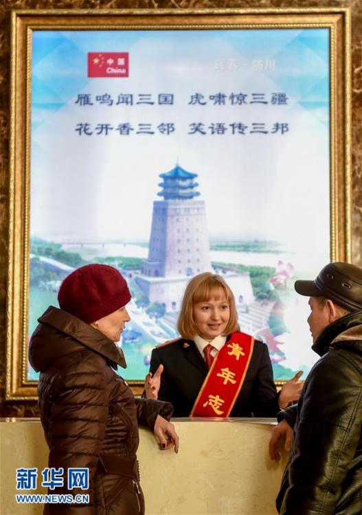 マリア(一番右側(cè))が1月27日、琿春駅で赤ちゃんを抱いた旅客と交流している。2015年9月、吉林省吉林市から延辺朝鮮族自治州の図們市を経て琿春市を結(jié)ぶ吉図琿高速鉄道が開通した。中國、ロシア、朝鮮の國境に位置する吉林省の小さな都市?琿春はこのほど初めて鉄道の春運(春節(jié)<舊正月>の帰省?Uターンラッシュに伴う特別輸送體制)を迎えた。同時に、琿春駅に初めて金髪に青い目をした春運ボランティアが登場した。そのボランティアとはロシア出身のマリアさんのことだ。新華網(wǎng)が伝えた。(編集JK)