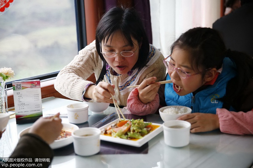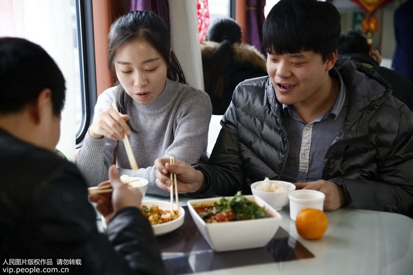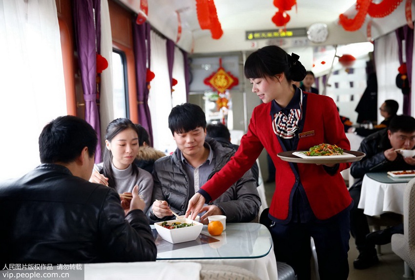 2016年の春運(yùn)(春節(jié)<舊正月>の帰省?Uターンラッシュに伴う特別輸送體制)期間において、成都鉄道局成都運(yùn)輸區(qū)は帰省する乗客に「故郷の味」を更に感じてもらうため、各普通列車(chē)の食事提供は故郷を前面に出して、故郷へと向かう列車(chē)の旅客に見(jiàn)た目も香りもいい四川の定食料理と炒め物料理を提供する。人民網(wǎng)が伝えた。