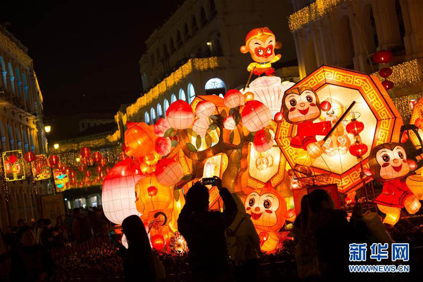 マカオ民政総署は1月29日、「猿で新年を祝う」というテーマの新年のイルミネーション點(diǎn)燈式を開催し、春節(jié)(舊正月、今年は2月8日)の到來を祝っている。新華網(wǎng)が伝えた。(編集JK)