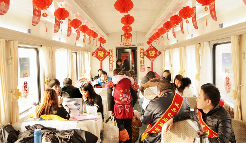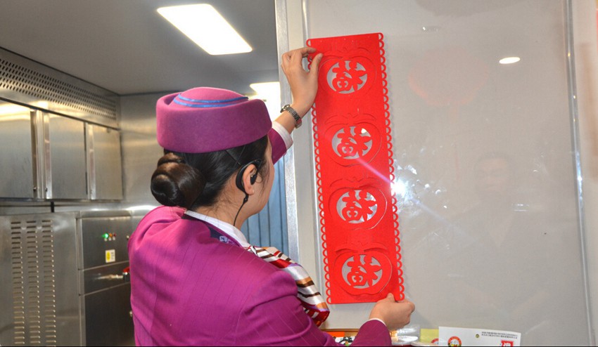 春節(jié)(舊正月、今年は2月8日)が近づき、故郷に帰る人々の動(dòng)きがますますせわしなくなっている?!复哼\(yùn)」(春節(jié)の帰省?Uターンラッシュに伴う特別輸送體制)も動(dòng)き出した。成都鉄道局重慶旅客輸送區(qū)間では、お正月ムードをまとった北京発?重慶行き列車「G309」が登場(chǎng)。乗務(wù)員が自分たちの手とアイディアを駆使して、新しい年を迎える喜びで車內(nèi)を満たした。人民網(wǎng)が伝えた。(編集KS)