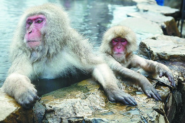 実際、日本にはサルが入る溫泉がある。長(zhǎng)野県下高井郡山ノ內(nèi)町の地獄谷溫泉にある「地獄谷野猿公苑」では、冬場(chǎng)になると氷點(diǎn)下10度ほどになることも多く、豊富な湯量を誇り、湯気が立つ溫泉にサルが浸かる様子を見ることができる。溫泉に入っているのは、メスザルと子ザルで、オスザルの姿はほとんどないのはおもしろい。その理由は、オスザルは群れを守るためにすぐに行動(dòng)できる態(tài)勢(shì)をとっているから。また、毛が濡れて自身の體が小さく見えるのを嫌うからと言われている。