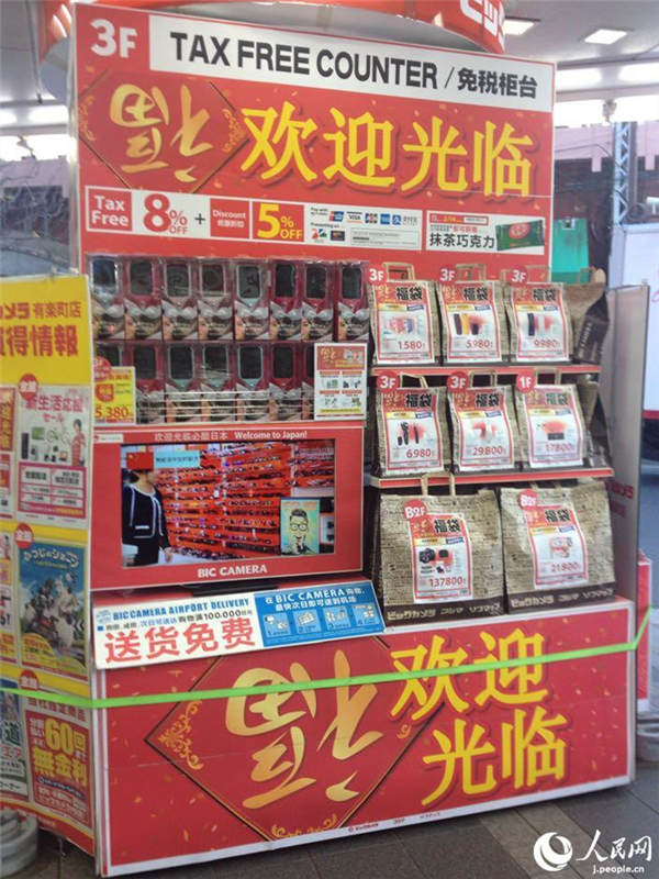 「福袋」は日本の特色ある商品だ。通常は「元旦商戦」に行われるが、今では多くの商店が春節(jié)に「福袋」を売り出す。有楽町のある電気店は入り口に春節(jié)「福袋」の公告を立てた。マグカップ、電気シェーバーなど中國人観光客に人気の福袋だ。大きな電化製品を運ぶのは大変なので、同店は購入商品が一定額以上なら空港まで無料で送るサービスも行っている。