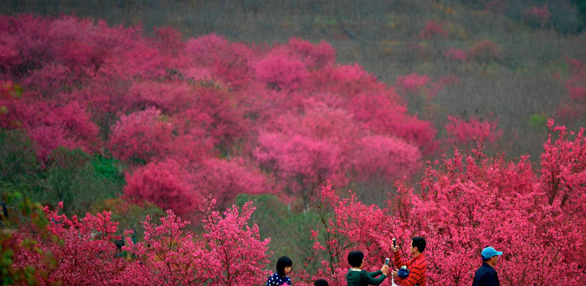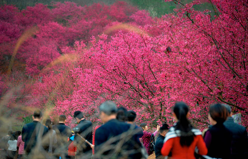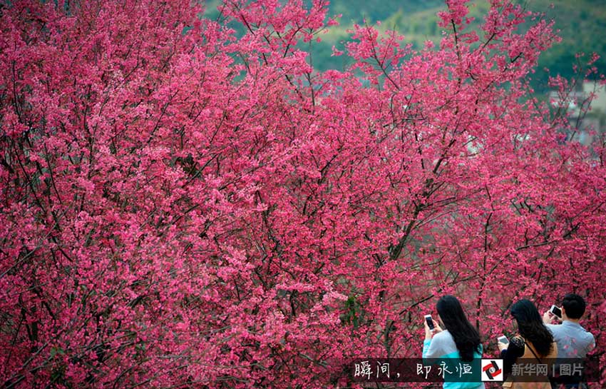 広東省韶関市のある公園では2月14日、桜の花が続々とほころんでおり、観光客が足をとめて見(jiàn)入ったり、記念寫(xiě)真を撮影したりと一足先に花見(jiàn)を楽しんでいた。新華網(wǎng)が伝えた。(編集JK)