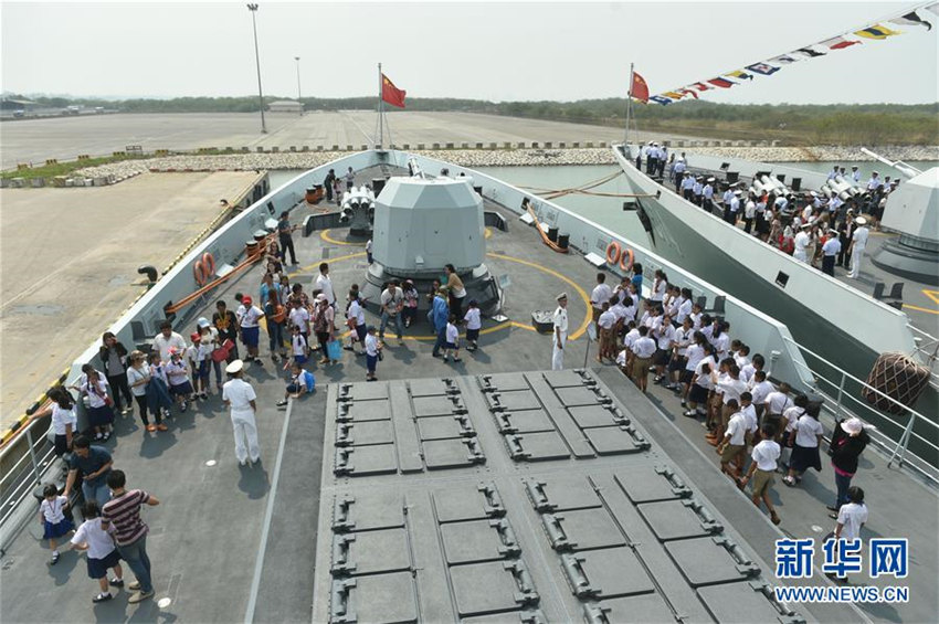 タイのチョンブリー県レムチャバン港で2月17日、人々が中國海軍第21次護送艦隊のミサイル護衛(wèi)艦「柳州」號を見學している。中國海軍第21次護送艦隊のミサイル護衛(wèi)艦「柳州」號と「三亜」號、総合補給艦「青海湖」號が同日、レムチャバン港に入港し5日間のタイ友好訪問を開始した。またタイの海軍は盛大な歓迎式典を開催した。新華網が伝えた。 (編集JK)