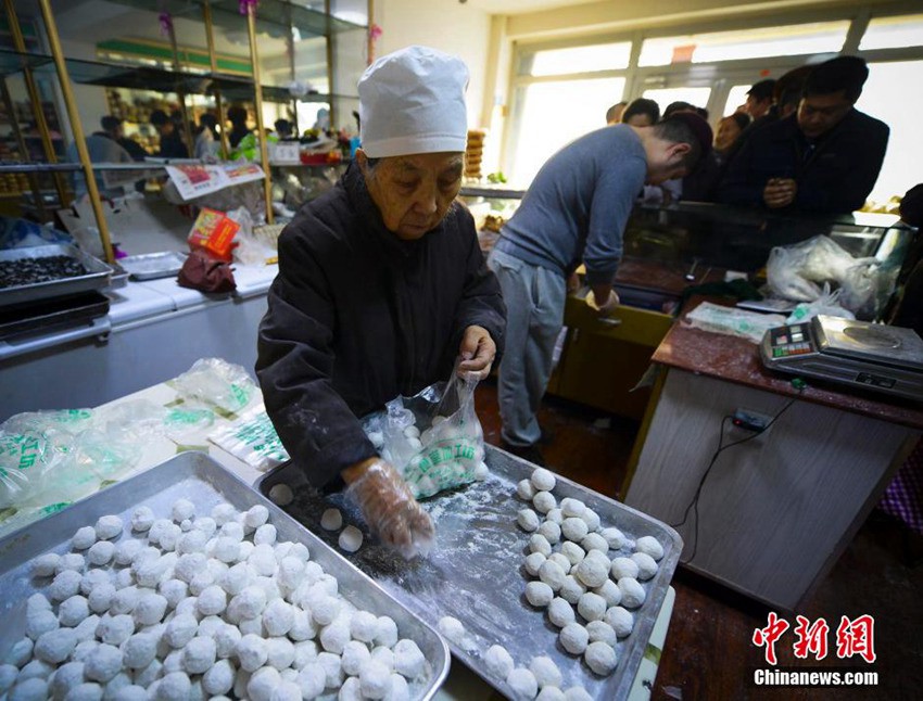 舊暦1月15日(今年は2月22日)の元宵節(jié)が間近に迫り、同店の元宵団子の販売もピークを迎えた。毎日市內(nèi)各地から同店の元宵目當(dāng)てに遠(yuǎn)路はるばる客が訪(fǎng)れ、小さな店內(nèi)がいっぱいになる。30平米あまりの作業(yè)場(chǎng)では、家中の働き手が全員集まり、約10種類(lèi)の元宵の餡作りや、元宵の制作を行っている。5~6人が毎日12時(shí)間以上働いているが、出來(lái)立ての元宵はすぐに売り切れになるという盛況ぶりだ。(編集SN)