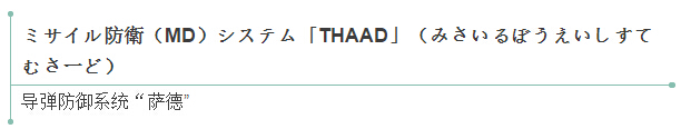 米國が朝鮮による新たな核実験と衛(wèi)星発射を口実に、ミサイル防衛(wèi)(MD)システム「THAAD」を朝鮮半島に持ち込む可能性があることで、これは地域の安全保障情勢を一層複雑化させる。日本メディアの最新報道によると、日本防衛(wèi)省も「THAAD」システムを?qū)毪筏谱試维F(xiàn)有のMDシステムと共に三段階のMDシステムを構築し、朝鮮の「ミサイルの脅威」に対処することを検討している。