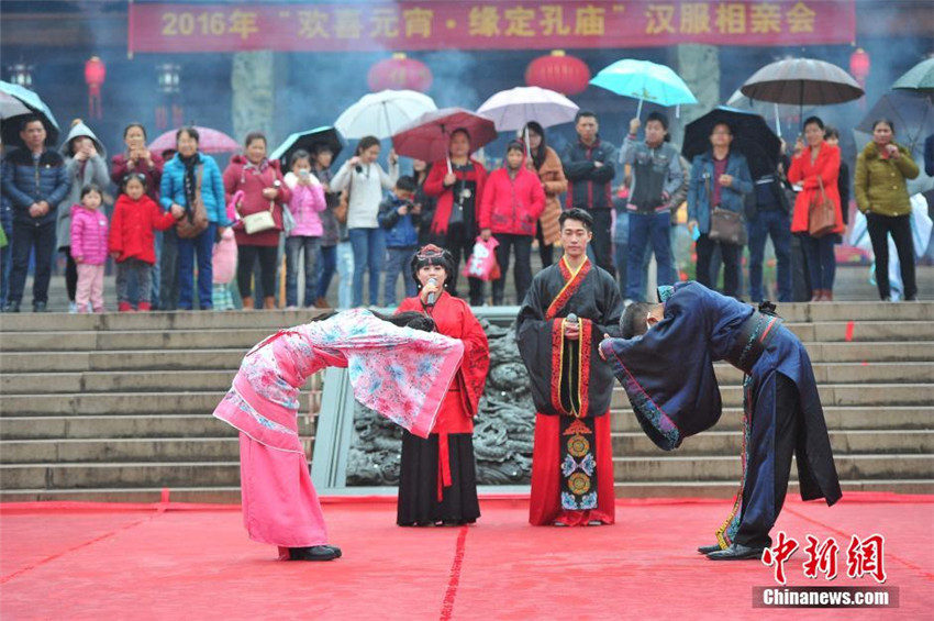 中國(guó)伝統(tǒng)の祭りである元宵節(jié)(舊正月1月15日)にあたる2月22日、広西チワン族自治區(qū)南寧市の孔子廟で「元宵を祝い、孔子廟で縁を結(jié)ぼう」という見合い大會(huì)を開催した。會(huì)場(chǎng)では100人近くの男女が漢服に身を包み、特殊な「漢式」見合いイベントを體験した。中國(guó)新聞網(wǎng)が伝えた。(編集JK)