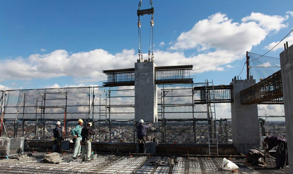 プレハブ建築の柱と柱のジョイントには「ジョイ工法」を採用している。この技術(shù)は1972年に日本にわたってから、改良が重ねられ、現(xiàn)在の最新技術(shù)ではまず工場でスリーブ(鉄筋をジョイントする場合に用いる部品)の一端と鉄筋のネジを機械を使ってジョイントして固定し、鉄筋のもう一端は設(shè)置現(xiàn)場で高強度モルタルを充てんして接続する(モルタルの液圧が部材の隙間まで入り込み、建築物の抗浸透性と安定性を向上させる)。この技術(shù)は地震が多い日本で長年のテストが重ねられており、安全性が高く、高層建築物にも安心して使用できるという。