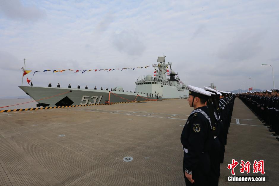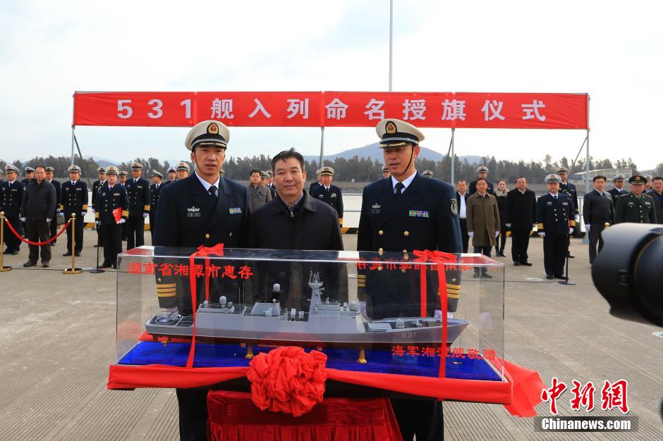 新型ミサイル護衛(wèi)艦「湘潭」の就役?命名式典が24日、浙江省舟山の某軍港で行われた。中國新聞網(wǎng)が伝えた。
