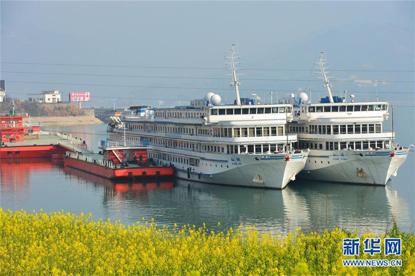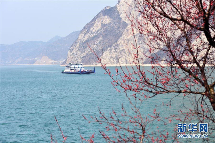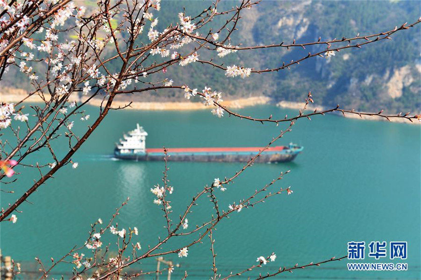 長江の三峽ダムで2月24日、船が航行している。気溫の上昇に伴い、長江三峽ダムの両岸には菜の花や野花が競うように咲き始め、すっかり春めいている。新華網(wǎng)が伝えた。(編集JK)
