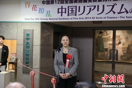 現(xiàn)代中國の美術(shù)展開幕式で挨拶する在日本中國大使館の郭燕公使