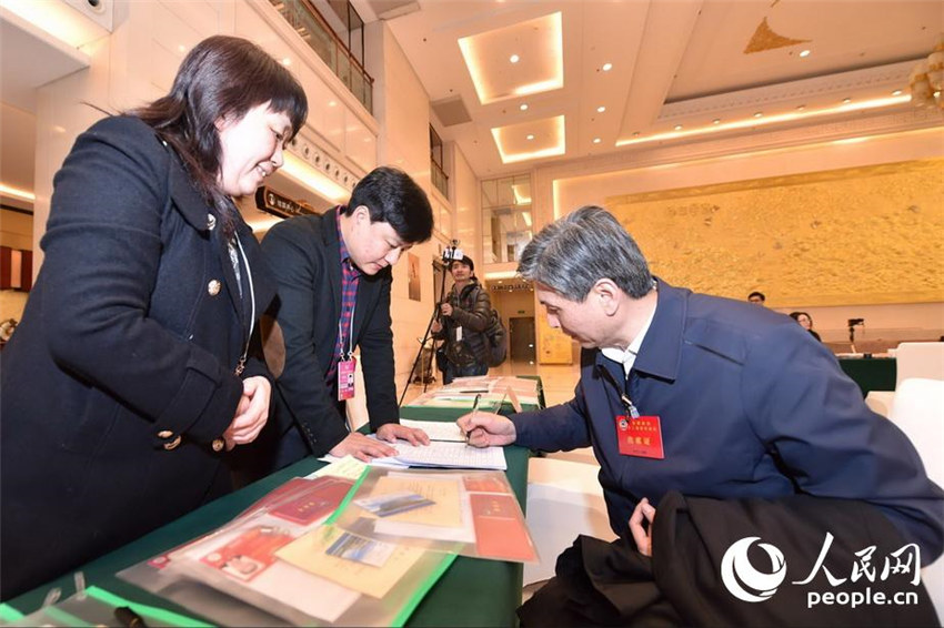 北京コンベンションセンターの政協(xié)委員宿泊地で3月1日、全國(guó)両會(huì)(人民代表大會(huì)?政治協(xié)商會(huì)議)に參加する政協(xié)委員が続々と受付登録を始めていた。人民網(wǎng)が伝えた。(編集JK)