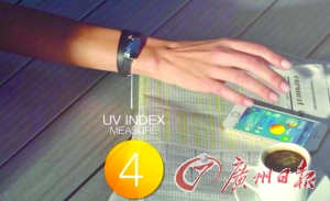 島などにバケーションに出かけると、日差しが強(qiáng)く、日焼けは避けられないだろう。日焼けが気になる人には、紫外線量を計測してアプリを通じて日焼け止めの強(qiáng)さや防止の著用をアドバイスしてくれるブレスレット型のウェアラブルデバイスがある。このブレスレットの「寶石」の部分がwifiを通してスマホと連動し、紫外線関連の指數(shù)や紫外線量のリアルタイム表示、1日 を通じて肌が吸収した紫外線量などが一目瞭然だ。(編集KN)