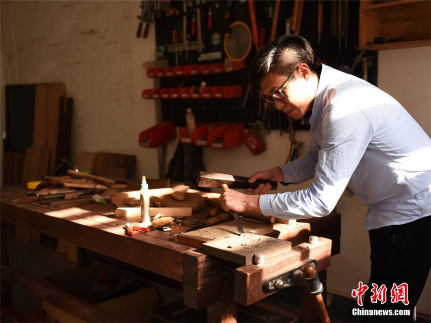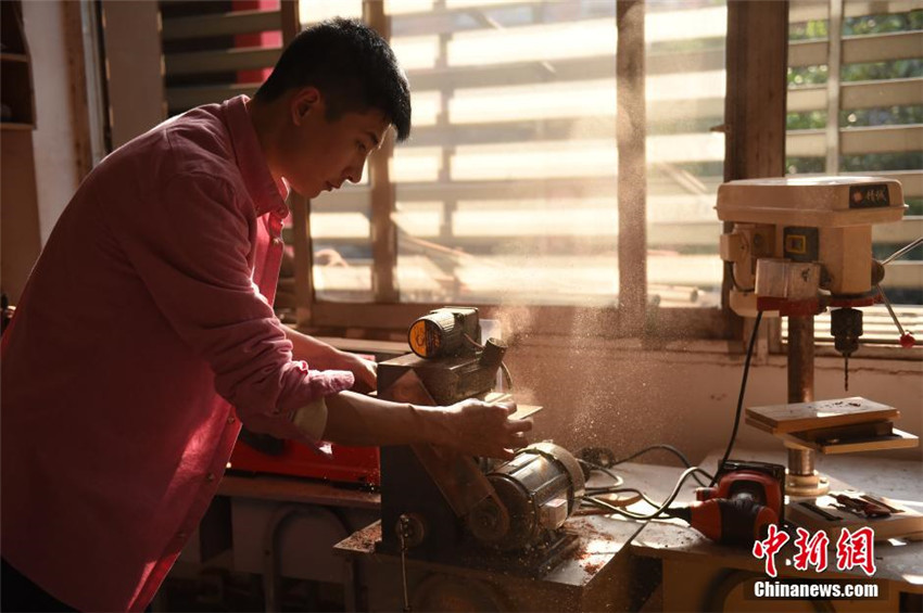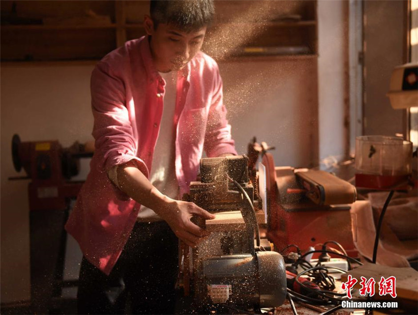 重慶の大學教員2人が3月6日、アトリエで木工工蕓品を製作している。崔旭さんと王玖さんはそれぞれ重慶交通大學と四川美術學院で教職に従事しているが、2人とも木工細工に対して深い興味を抱き、世界各國の様々な木材を探し求め、各地で集めてきた木材をまとめて木材サンプルにすることを決意した。中國新聞網(wǎng)が伝えた。(編集JK)