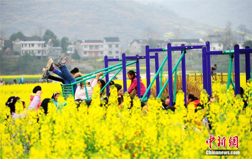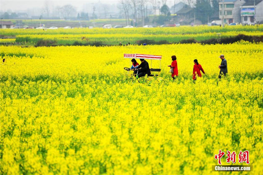 陽春の3月、重慶秀山トゥチャ族ミャオ族自治県にある約1733ヘクタールもの花畑に大勢の観光客が訪れている。賑わう人の波と一面の菜の花畑がお互いに映えあい、趣きを醸し出している。秀山竜鳳花海景勝地は2013年に第1期「中國の美しい田園」の菜の花畑の風(fēng)景全國トップ10に選ばれた。敷地內(nèi)には七十壩、四斗壩、南丘壩、龍鳳壩などいくつかの區(qū)畫に分かれており、區(qū)畫同士が繋がっており、遮るものもないので、一望のもとに見渡せる。約1733ヘクタールの敷地に咲く菜の花を一望できる花畑は武陵山地區(qū)全體において最大面積を誇り、最大規(guī)模の食糧、食用油の栽培基地でもある。毎年、菜の花が咲く時期が巡り、金色に染まった花畑を訪れると、花の世界の中に身を置くような感覚になり、心から爽やかな気持ちにさせてくれる。中國新聞網(wǎng)が伝えた。(編集JK)