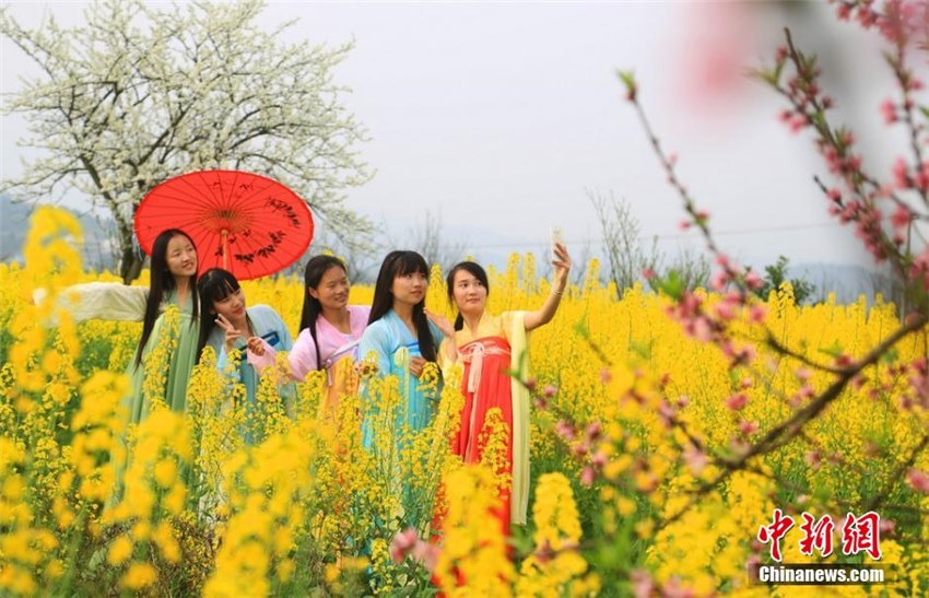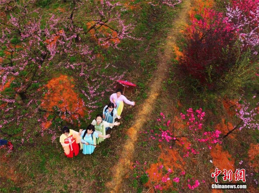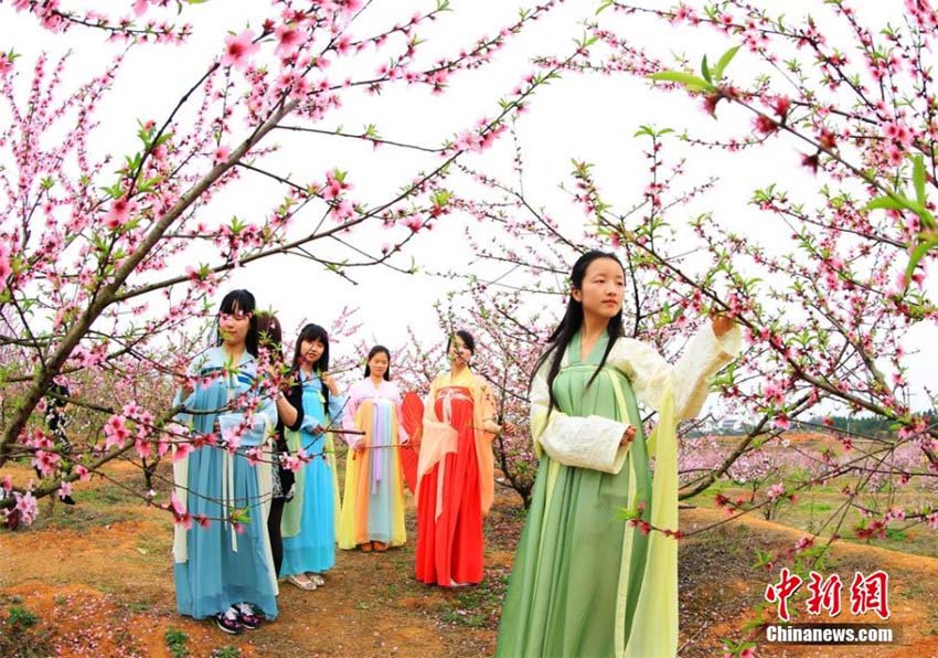 3月7日は「女子學(xué)生の日」であるが、南華大學(xué)(湖南省衡陽(yáng)市)の漢服愛好家たちが中國(guó)の漢服文化を広めるため、桃の園で「漢服ショー」を行なった。中國(guó)新聞網(wǎng)が伝えた。(編集JK)