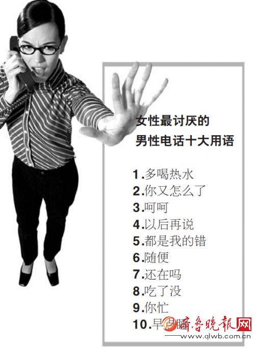調査結果によると、「お湯をたくさん飲みなさい」「一體どうしたの?」「ハハハ」「その話はまたあとで」「全部僕が悪いんだ」「君に任せるよ」「まだいるの?」「ご飯食べた?」「忙しいんだね」「早く寢なさい」が、女性に最も際われる言葉トップ10だった。