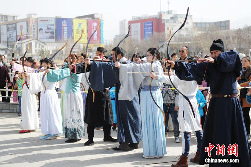 舊暦の2月2日は中國古代伝統(tǒng)の「花朝節(jié)」にあたるが、甘粛省蘭州市では數(shù)十人の漢服愛好家が同市の雁灘公園で「漢服ショー」で古代の弓矢の技術(shù)を披露し、周辺の人々が足をとめ見學(xué)していた。中國新聞網(wǎng)が伝えた。(編集JK)