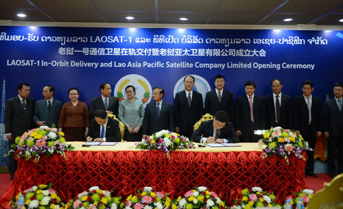 中國(guó)とラオスが協(xié)力する通信衛(wèi)星「ラオス1號(hào)」の軌道上引渡し式が9日夜、ラオスの首都ヴィエンチャンの衛(wèi)星地上ステーションで開(kāi)かれた。中國(guó)亜太移動(dòng)通信衛(wèi)星有限責(zé)任公司(以下、中國(guó)亜太)とラオス政府が、プロジェクトの引渡しに関する文書に署名した。新華社が伝えた。
