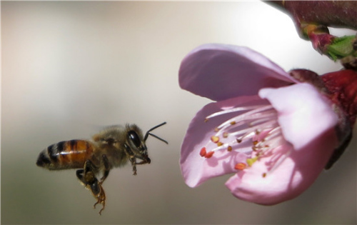 レバノン山岳地帯では桃の花が開花、蜜蜂が慌ただしく舞い始め、ハチミツ集めに奔走する。