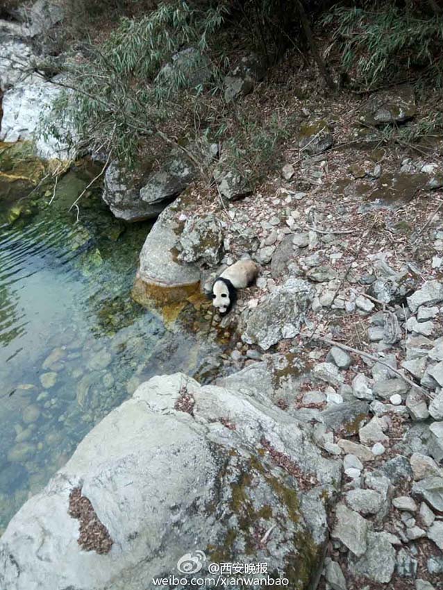 何さんは、「同村は陝西省仏坪県の國家級自然保護區(qū)域の中に位置している。市街地に向かう途中の3月9日午後4時ごろ、約4、5メートル先の小川のへりで體長1メートルほどのパンダが悠々と水を飲んでいるのを見つけた」と話す。