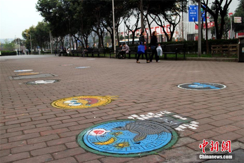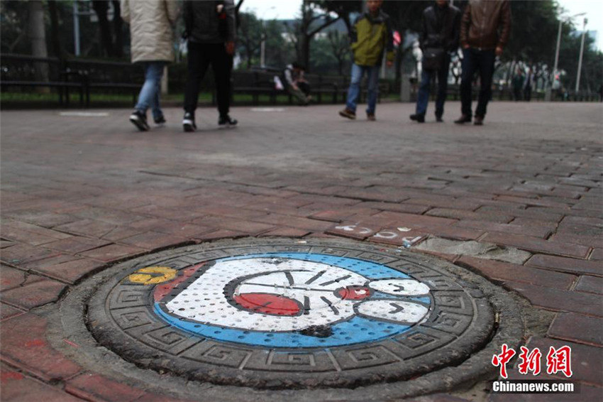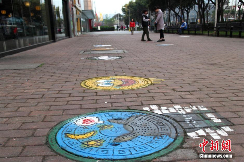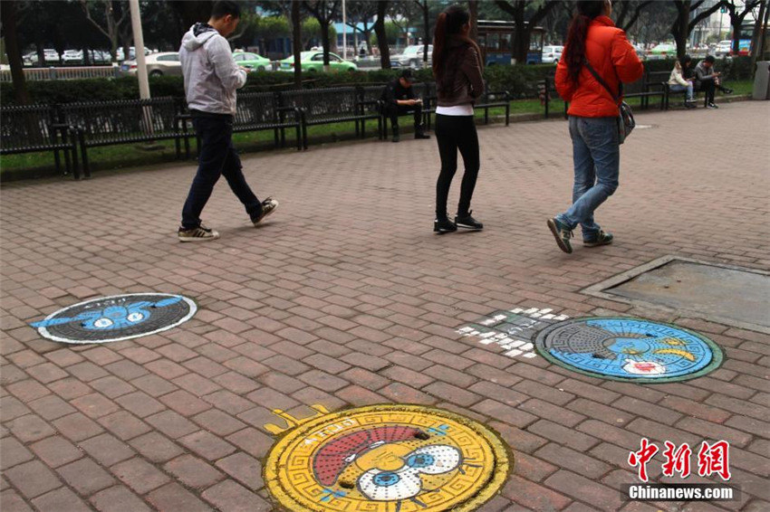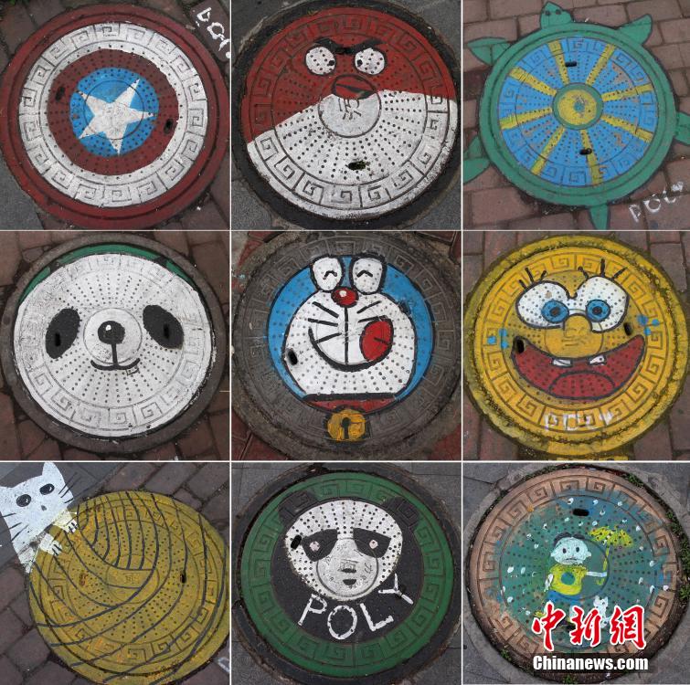 四川省成都市の街角を彩る數(shù)十個(gè)のアートマンホール蓋が3月14日、人々の注目を集めている。マンホール蓋にはパンダ、ドラえもん、アングリーバード、スポンジボブなど様々なキャラクターが描かれており、街角に彩りを添えている。中國(guó)新聞網(wǎng)が伝えた。(編集JK)