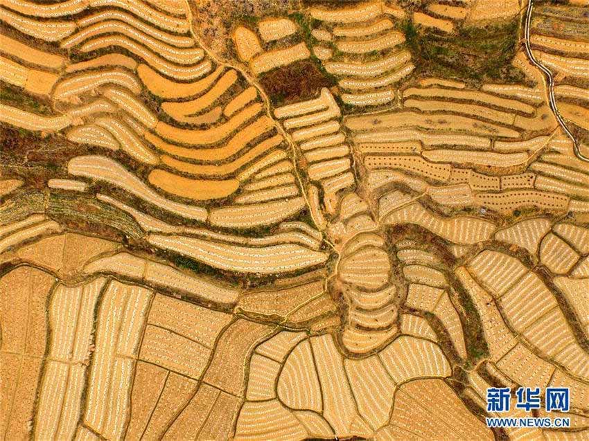 これは広西チワン族自治區(qū)百色市右江區(qū)永楽鎮(zhèn)西北楽村のスイカ畑の風(fēng)景を3月14日に空撮したものだ。目下、同村はスイカの種植えと栽培のシーズンを迎えた。地面を縦橫複雑に交差するスイカの段々畑とチワン族の村は見(jiàn)事な田園絵巻を描いている。永楽鎮(zhèn)は広西で有名なスイカの郷で、栽培面積は1千ヘクタール、スイカの年間生産量は2萬(wàn)8千トンだ。中國(guó)新聞網(wǎng)が伝えた。(編集JK)