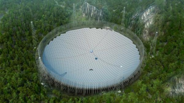 (一)貴州省で建造中の口徑500メートル級球面電波望遠(yuǎn)鏡。9月に竣工を予定しているこの望遠(yuǎn)鏡は、世界最大の単一アンテナの電波望遠(yuǎn)鏡で、感度は米國がプエルトリコに持つアレシボ天文臺の3倍に達(dá)する。深宇宙文明の無線電波の探査を主な使命とする。