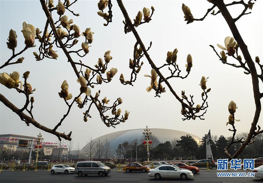 北京の幹線道路?長安街では3月15日、モクレンの花が次第に咲き始めてきた。気溫の上昇に伴い、北京の市街地ではあちらこちらのモクレンの花が開花し始めている。北京気象臺の予報によると同市は今週、気溫が暖かくなり、金曜日の最高気溫は20度に達するという。新華網(wǎng)が伝えた。(編集JK)