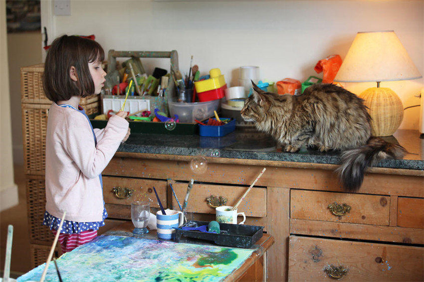 英國のアイリス?グレース?ハームシャーちゃん(6)は重度の自閉癥だが、彼女の飼い貓であるメインクーンのトゥラは彼女の自信を取り戻すのを手伝っている。ネコの付き添いのもと、彼女は自身の蕓術的才能を発揮した。海外網が伝えた。