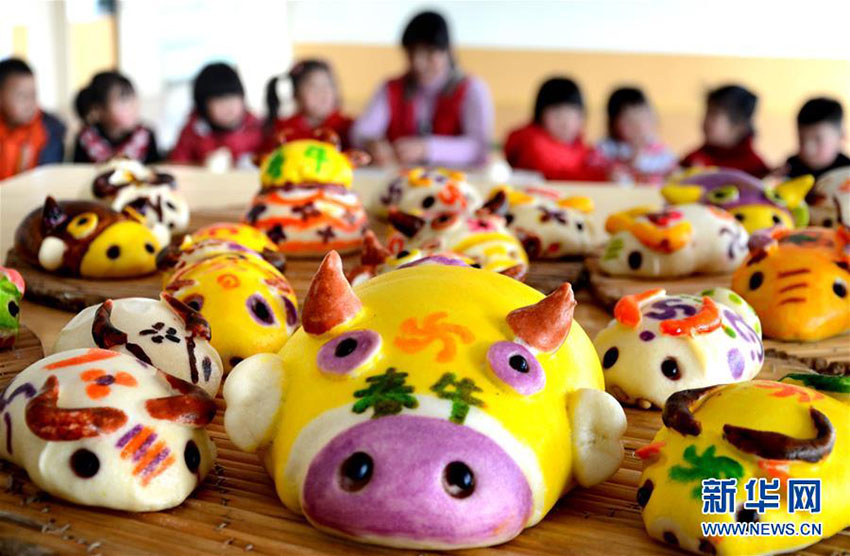 山東省沂源県悅荘中心幼稚園の先生と子ども達(dá)が17日、小麥粉細(xì)工の「春?!工蜃鳏盲俊!复号¥蜃鳏盲拼悍证蛴à搿工趣い顒?dòng)で、小さい子ども達(dá)は先生の指導(dǎo)の下、小麥粉でさまざまな春牛を作り、蒸し上げて完成させた?,F(xiàn)地では春分に春牛を作り、農(nóng)耕作業(yè)をする牛に感謝するとともに、農(nóng)作業(yè)が順調(diào)に進(jìn)み、五穀豊穣であるよう祈る習(xí)慣がある。(編集KS)