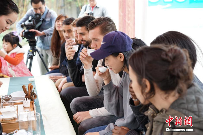 フランス、タイ、韓國、米國、ボツワナなどから集まった20人余りの外國人が標(biāo)高1000メートルの重慶巴南區(qū)二聖鎮(zhèn)にある白象山茶園で3月20日、お茶作りの楽しさを體験した。早朝に山に登り茶摘みを行い、正午はお茶を炒った後、最後に試飲を行なう。茶の製造工程は複雑かつ興味深く、多くの人が中國の伝統(tǒng)的な茶文化の奧深さを體感すると同時に、茶作りを通して中國茶文化を自國に持ち帰って欲しいと期待している。中國新聞網(wǎng)が伝えた。(編集JK)