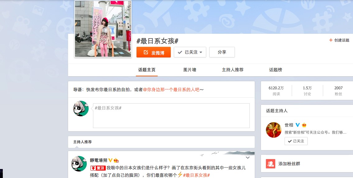 先月28日、「日本人女子に何を?qū)Wぶ?」と題した文章が中國(guó)版ツイッター微博で話題となった?!溉毡疚幕我环翁貜栅希俊埂溉毡兢楗榨ˉ氓伐绁螭沃长胜筏?qū)Wぶべき?」「どんな女子が日本らしいスタイルといえる?」といった議論が微博上で繰り広げられた。ハッシュタグ「#最日系(日本風(fēng))女子」はその日の微博リサーチランキングでトップ3にランクインした。