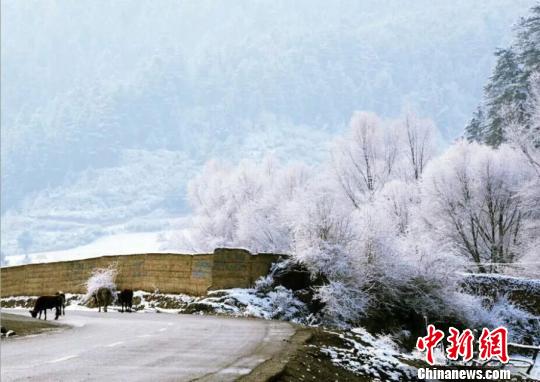 甘粛省迭部県で3月下旬、春の雪で山間の村は雪化粧してしまい、まるで童話の世界を見せてくれている。中國新聞網(wǎng)が伝えた。(編集JK)