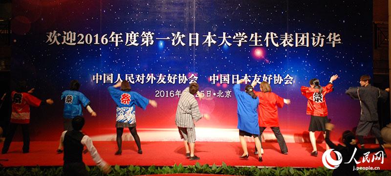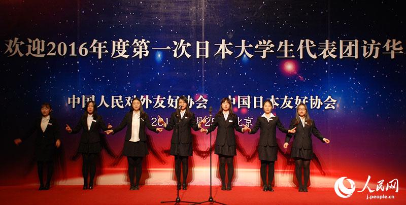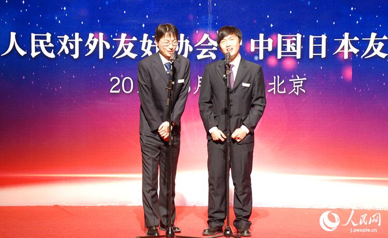 同日のレセプションには國際関係學(xué)院、中央音楽學(xué)院の中國人學(xué)生も參加し、日本人學(xué)生と交流した。中日の大學(xué)生は歌や漫才、民族舞踴などを披露したほか、最後に両國の學(xué)生が一緒に周華?。ēē擤`ル?チョウ)の名曲「朋友」を歌い、ムードを盛り上げた。