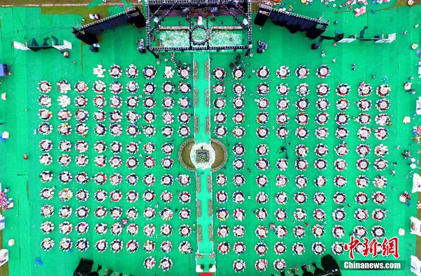 四川省成都市雙流區(qū)のグリーンツーリズムの村で、2人の新婚カップルが挙式を行ない、披露宴會場では2000人以上の親戚や友人が新たな門出を祝った。中國新聞網(wǎng)が伝えた。(編集JK)