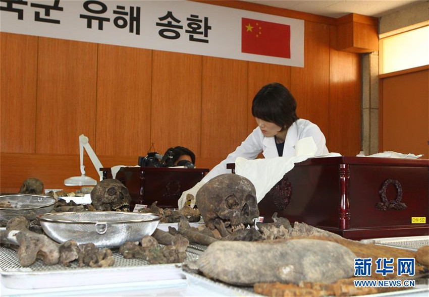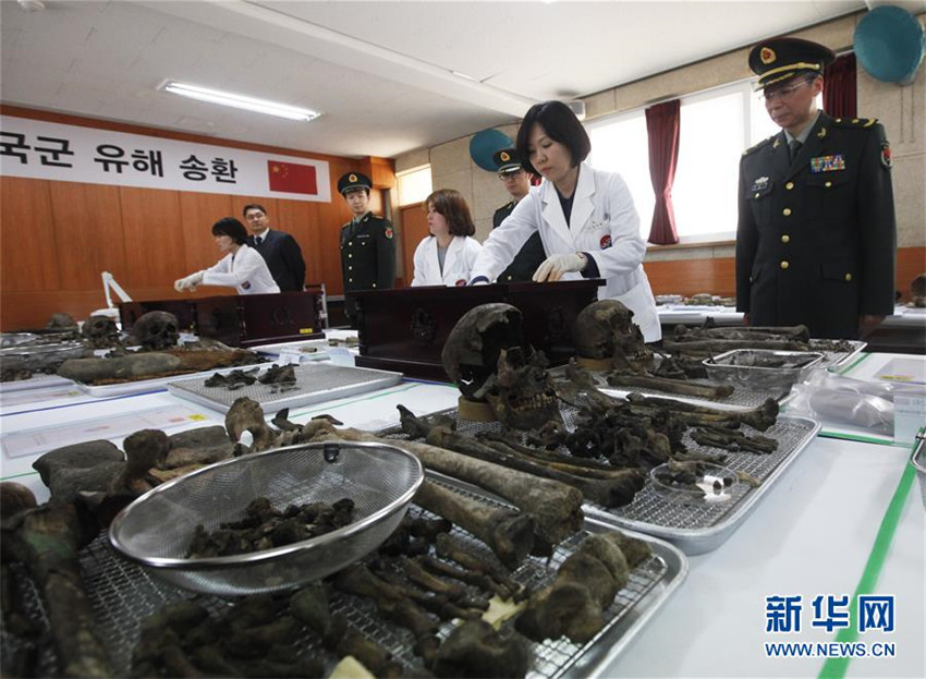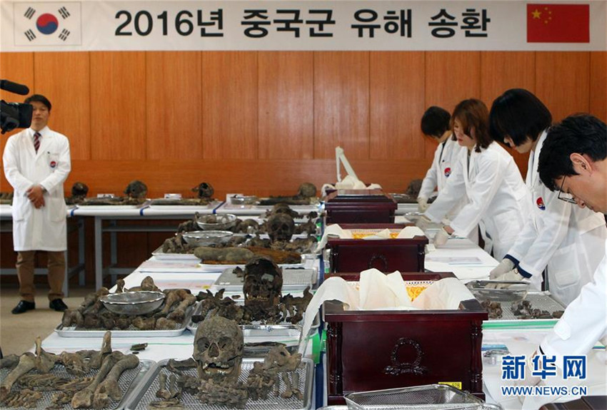 韓國京畿道坡州市で3月28日、韓國側(cè)の作業(yè)員が中國人民志願軍烈士の遺骨を納棺している。中國、韓國雙方は28日午後、同市において韓國に殘留している中國人民志願軍烈士の遺骨の2016年度納棺作業(yè)を開始した。中國人民志願軍烈士の遺骨36體と遺品は2015年に韓國京畿道漣川郡、鉄原郡など朝鮮戦爭の激戦地で発掘されたという。中韓雙方の協(xié)議により達成した合意に基づき韓國側(cè)は31日、発掘された人民志願軍烈士の遺骨と遺品を中國に引き渡す予定だ。中國新聞網(wǎng)が伝えた。(編集JK)