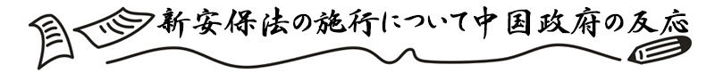 28日の定例記者會(huì)見で外交部(外務(wù)?。─魏槔趫?bào)道官は「アジア近隣國(guó)と國(guó)際社會(huì)が日本の軍事?安全保障面の動(dòng)向に懸念を表明し続けているのは、歴史的原因のためだ。われわれは日本側(cè)が歴史の教訓(xùn)をしっかりと汲み取り、平和的発展の道を堅(jiān)持し、軍事?安全保障政策において慎重に事を運(yùn)び、近隣國(guó)との相互信頼の強(qiáng)化、地域の平和?安定にプラスの事をするよう希望する」と述べた。詳細(xì)へ